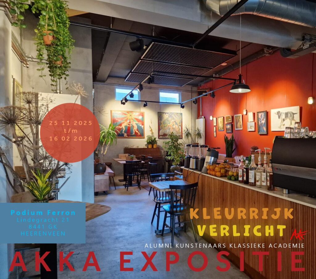 Van 25-11-2025 t/m 16-02-2026 neemt Fimmie Meester deel aan de AKKA groepsexpositie “Kleurrijk Verlicht” bij Podium Ferron, Lindergracht 21, 8441 GK, Heerenveen. Je kunt er een zestal werken van Fimmie Meester bewonderen.